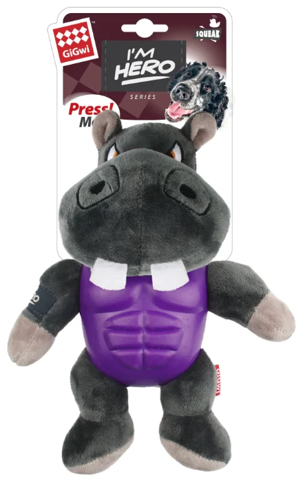Игрушка для собак, GiGwi "I'am Hero" Бегемот с пищалкой 20 см