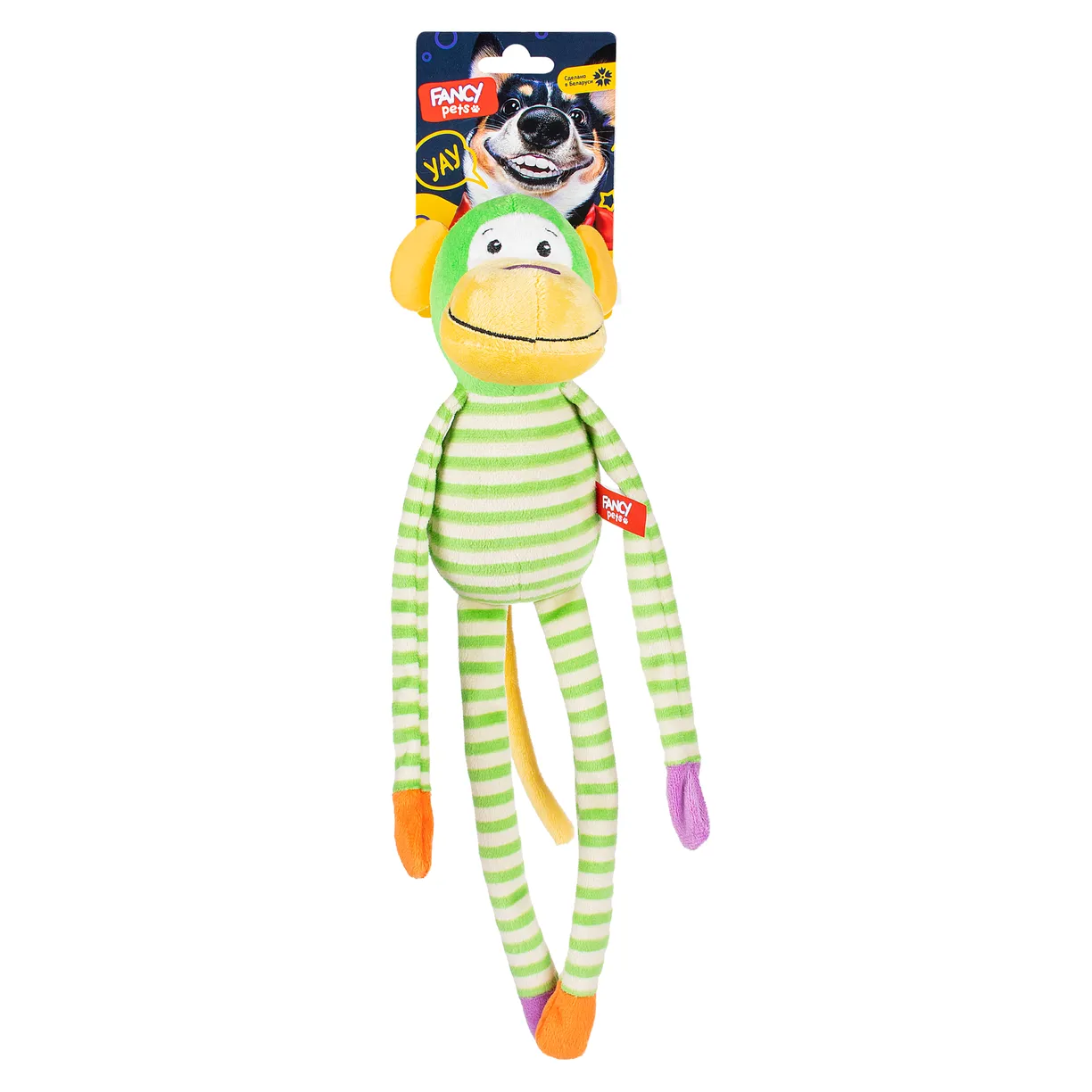 Яркая, озорная "Обезьяна" от Fancy Pets разделит самые веселые игры с вашим песиком! Собачке будет интересно кусать, жевать игрушку, таскать ее за длинные лапки. Развивающая игрушка станет отличным вариантом для дрессировки, активных игр и обучения как щенков, так и взрослых питомцев. Игрушка снимает напряжение у животных и позволяет легко переносить стресс. Подходит для игр дома и на улице. Внутри обезьянки спрятана пищалка, швы укреплены специальной нитью. Сделано в Беларуси.