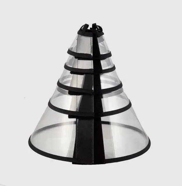 - Форма в виде конуса не мешает животному при кормлении, во время прогулок и сна.