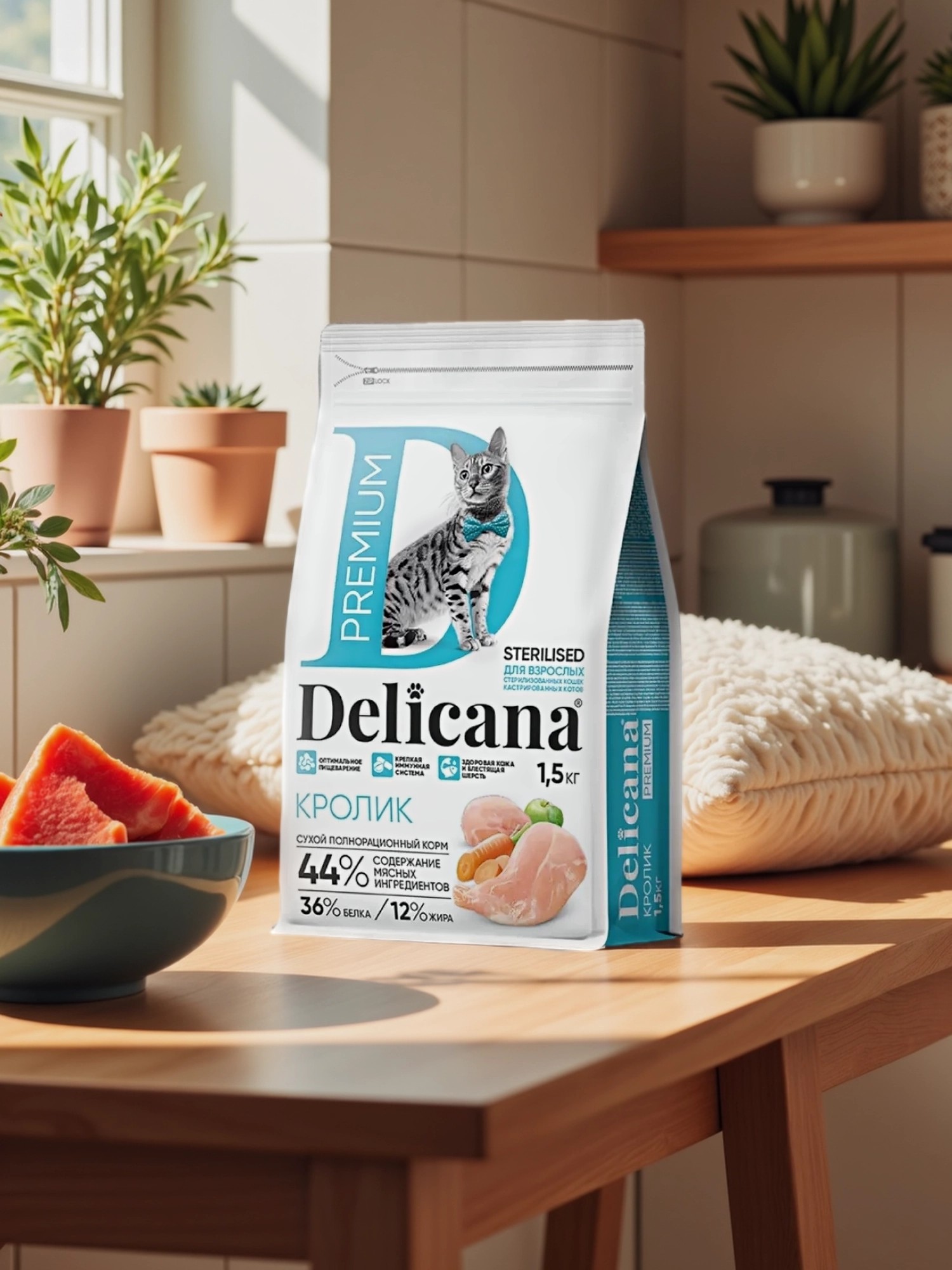 Сухой корм DELICANA  для стерилизованных кошек и кастрированных котов с кроликом 1,5 кг