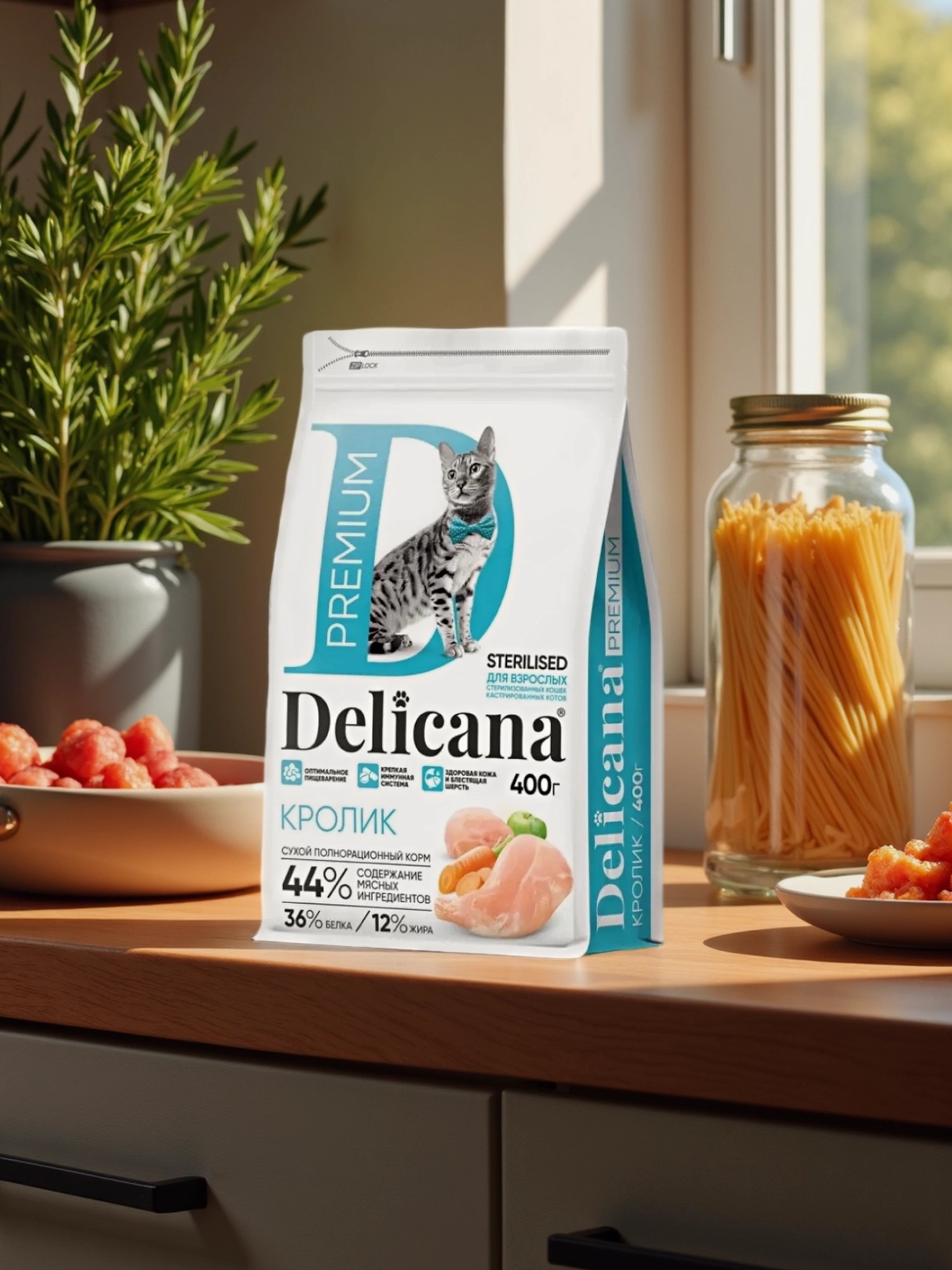 Сухой корм DELICANA для стерилизованных кошек и кастрированных котов с кроликом 0,4кг