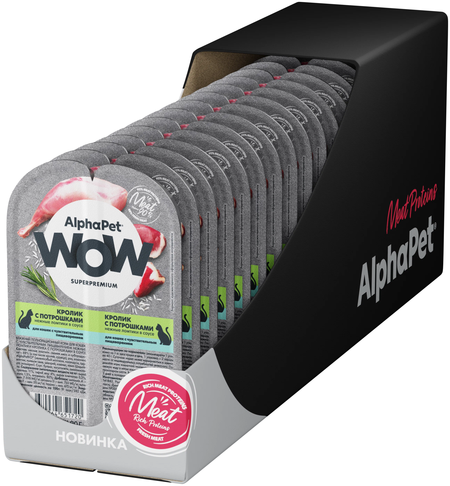 Влажный корм Альфа Пет Superpremium для кошек с чувств. пищ. кусочки в соусе Кролик и черника 15*80г