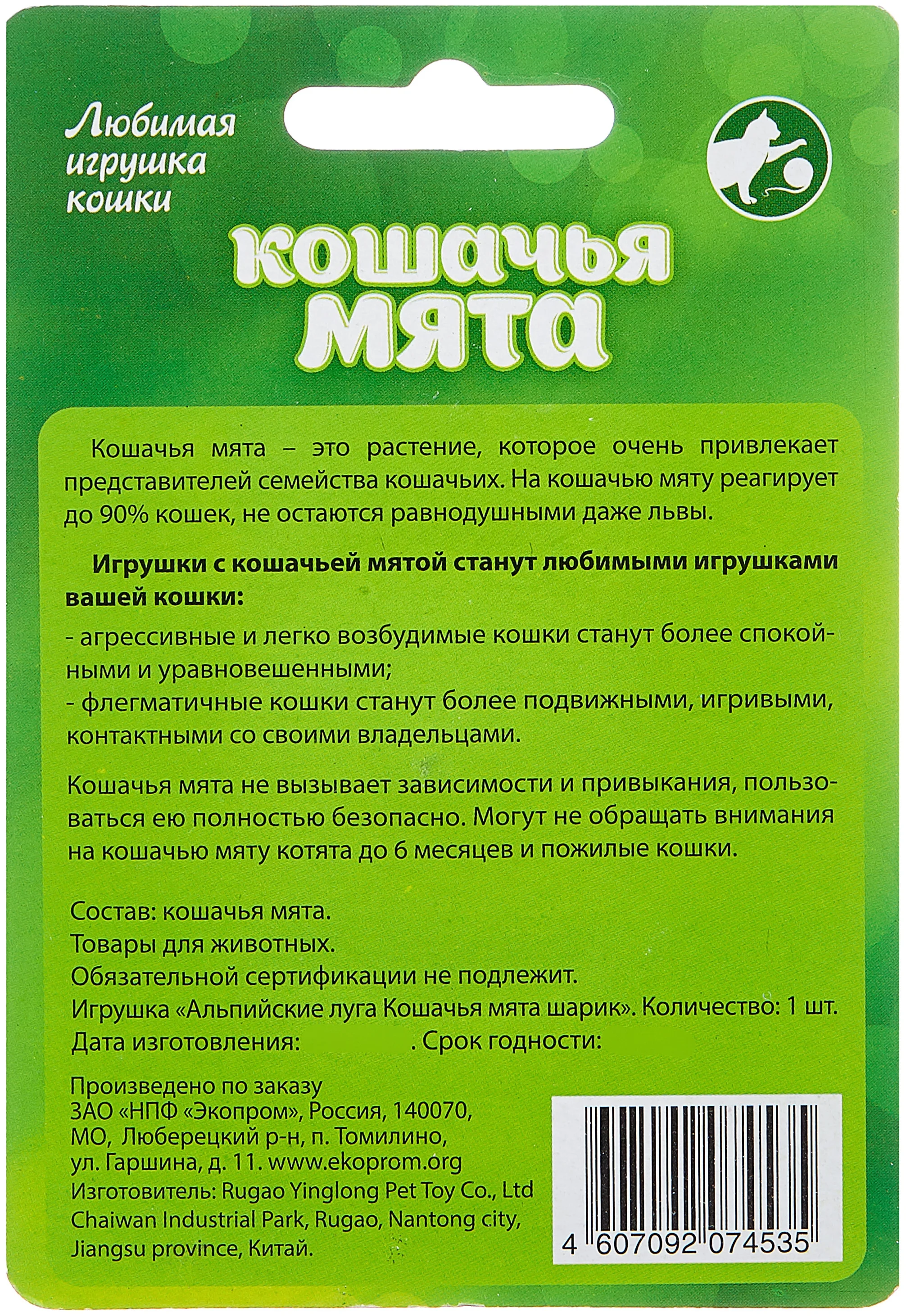 Шарик Альпийские луга Кошачья мята станет любимой игрушкой вашей кошки.