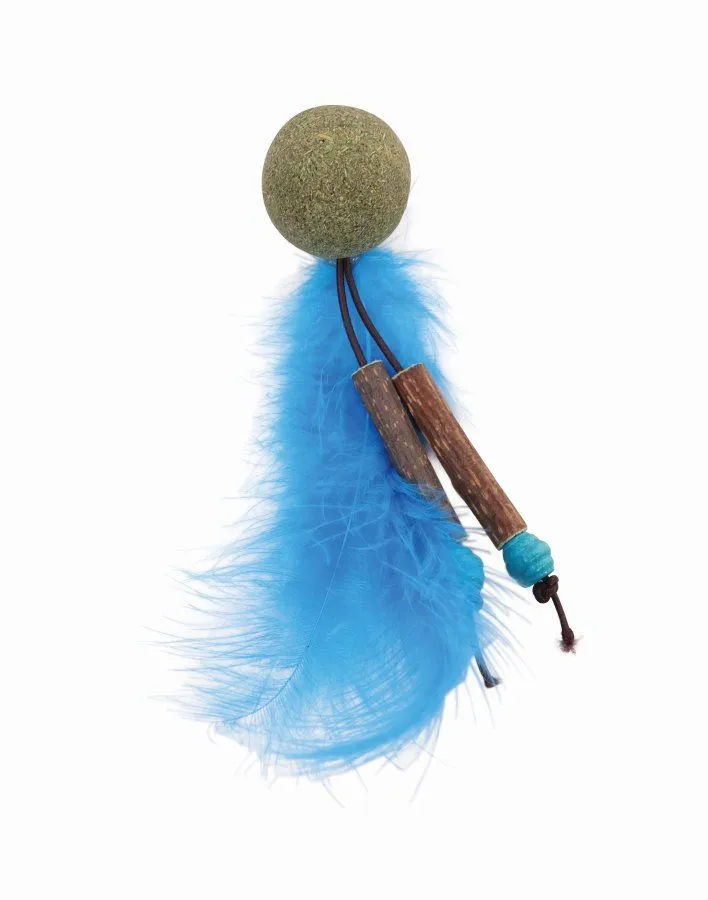 Перьевой хвостик: Натуральные или искусственные перья на конце игрушки привлекают внимание и пробуждают охотничий инстинкт .