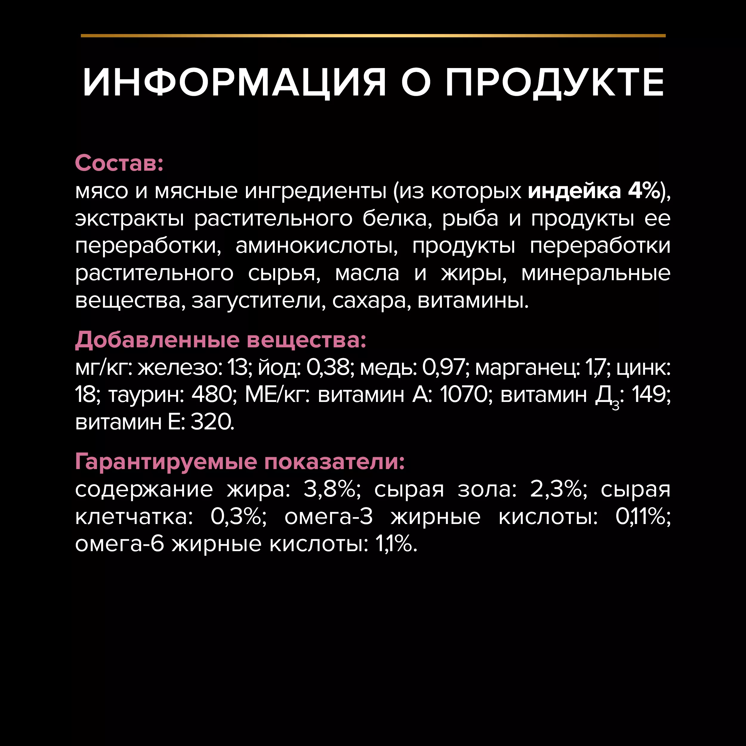 Наш полнорационный влажный корм для кошек с чувствительным пищеварением был разработан при участии команды ветеринарных экспертов. Он создан для ежедневного кормления питомцев с деликатным ЖКТ и обладает высокой вкусовой привлекательностью, благодаря нежному паштету с индейкой.
