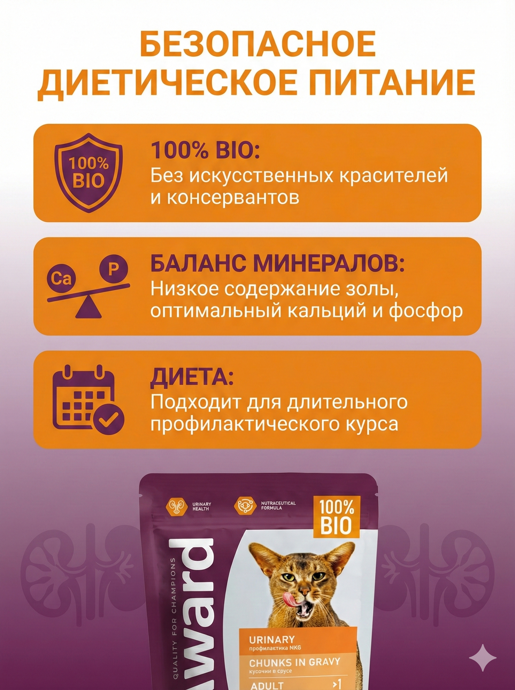 Профилактика МКБ: Специальная формула помогает снизить риск образования струвитных кристаллов и камней.