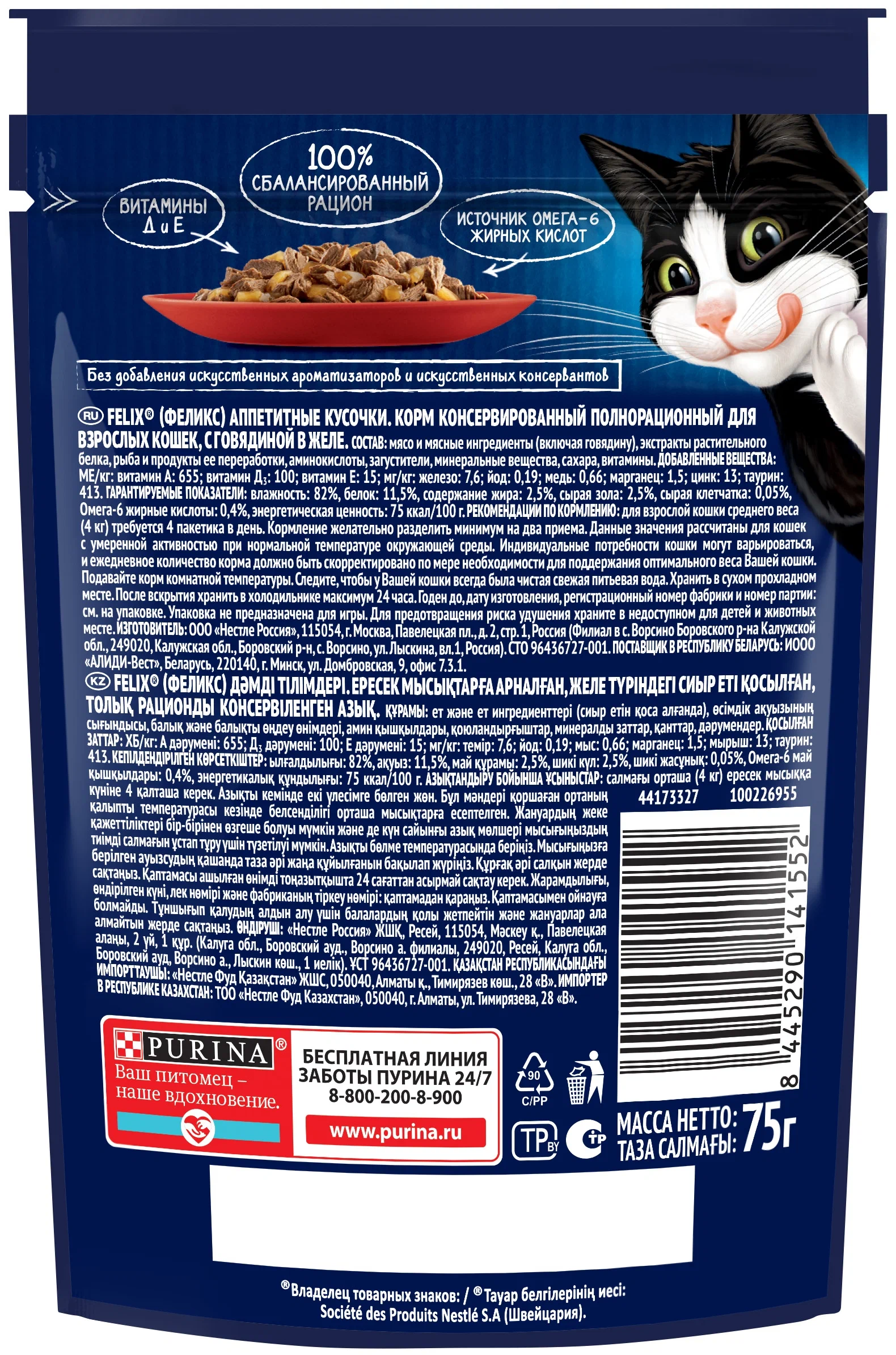Эксперты Purina, разрабатывая влажные корма для домашних любимцев, создали корм для взрослых кошек Felix «Аппетитные кусочки» — специально для Вашего любителя вкуснятины. Влажный корм для кошек Felix Аппетитные кусочки — полнорационный, содержит все необходимое для здоровой активной долгой жизни.