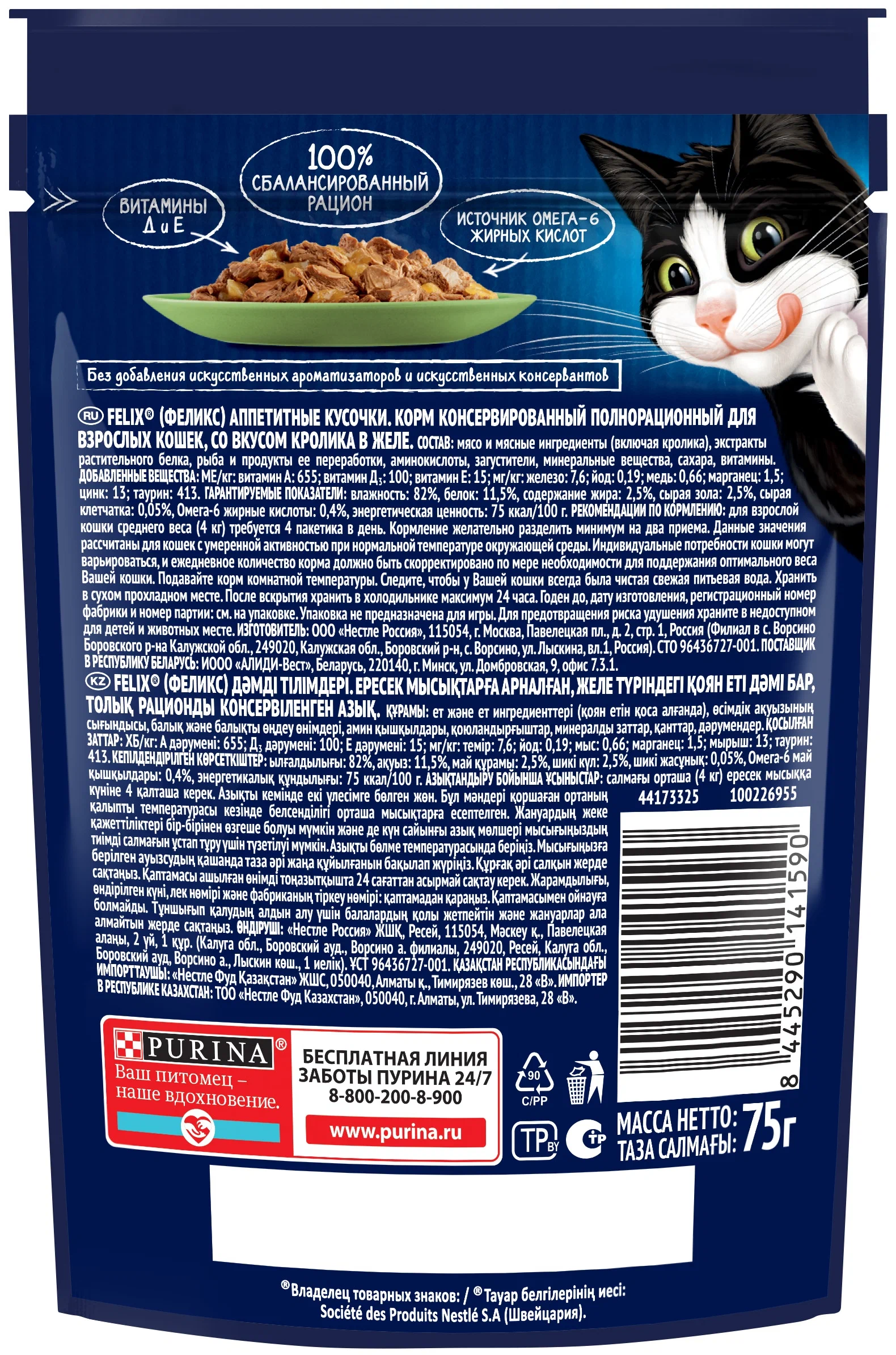Влажный корм Felix Аппетитные Кусочки Кролик 26x75г