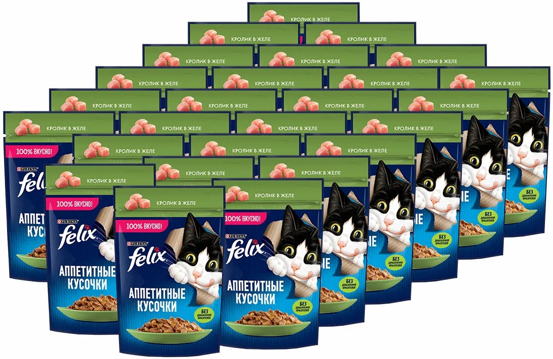 Каждый котик желает наслаждаться совершенно особенным кормом, у которого будет такой аппетитный вид и аромат, словно Вы приготовили его сами. Каждый пакетик корма для взрослых кошек «Аппетитные кусочки» содержит нежные кусочки в сочном желе – вкуснятину, от которой кота за уши не оттащишь! Эксперты Purina, разрабатывая влажные корма для домашних любимцев, создали корм для взрослых кошек Felix «Аппетитные кусочки» — специально для Вашего любителя вкуснятины. Влажный корм для кошек Felix «Аппетитные кусочки» — полнорационный, содержит все необходимое для здоровой активной долгой жизни.