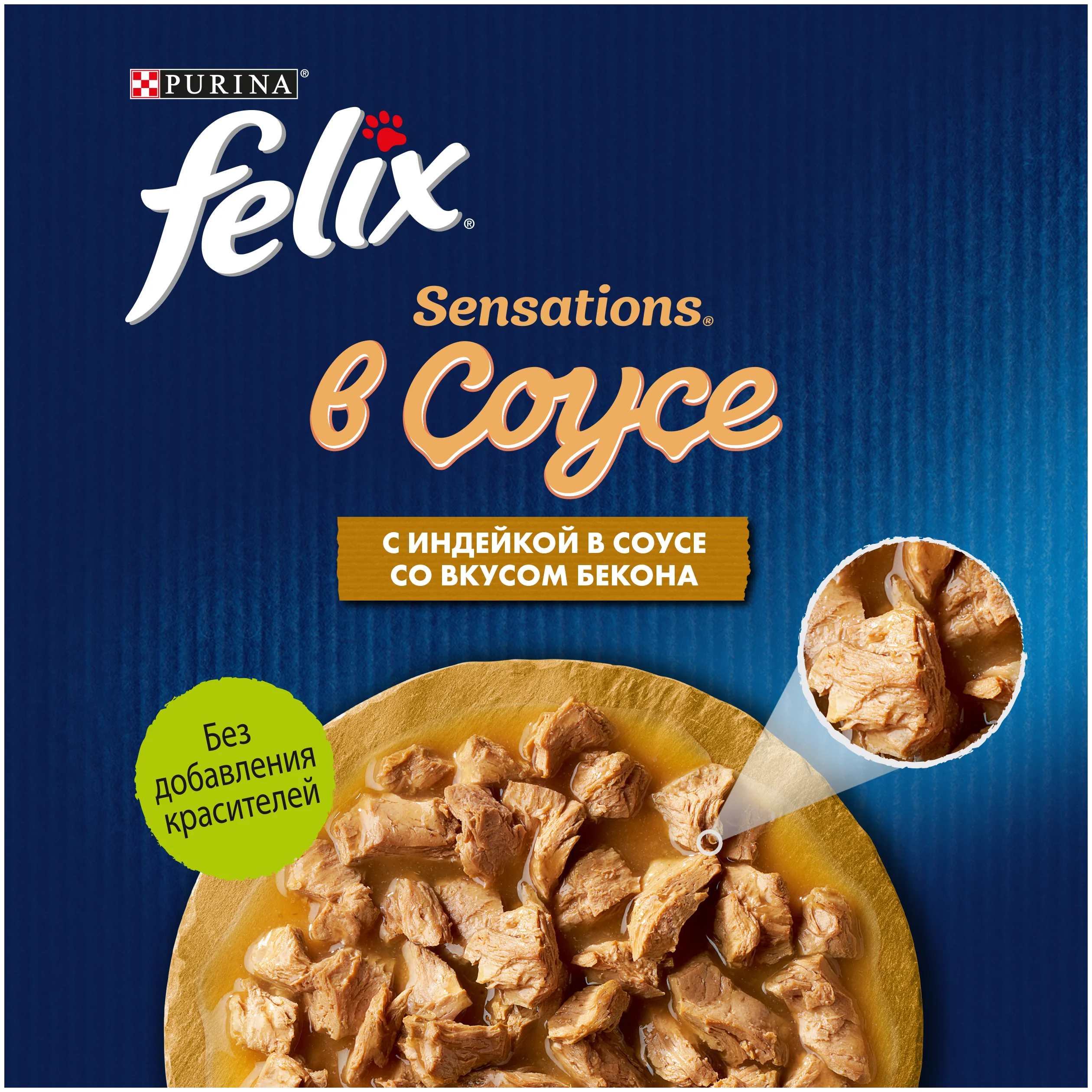 Влажный корм Felix Sensations Соус Индейка Бекон 26x75г