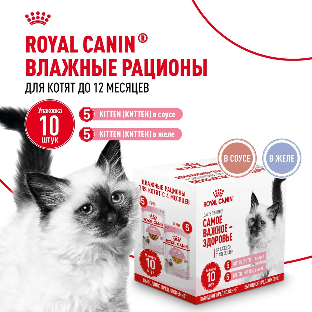 Влажный корм Royal Canin для котят ( 5 в соусе 5 в желе) 10*85г