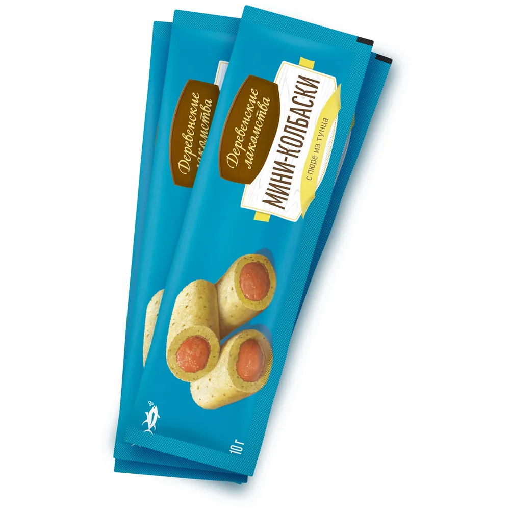 Деревенские лакомства 4 шт х10 г мини-колбаски для кошек с пюре из тунца
