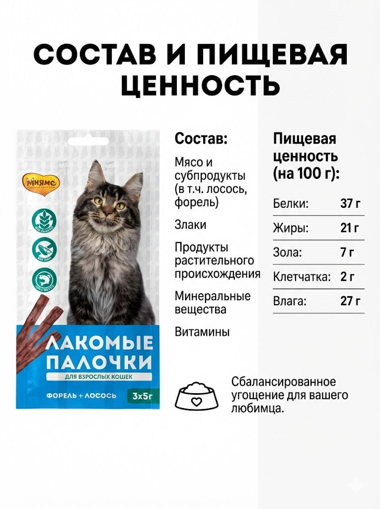 Дарите своему любимцу моменты радости с лакомыми палочками «Мнямс»!