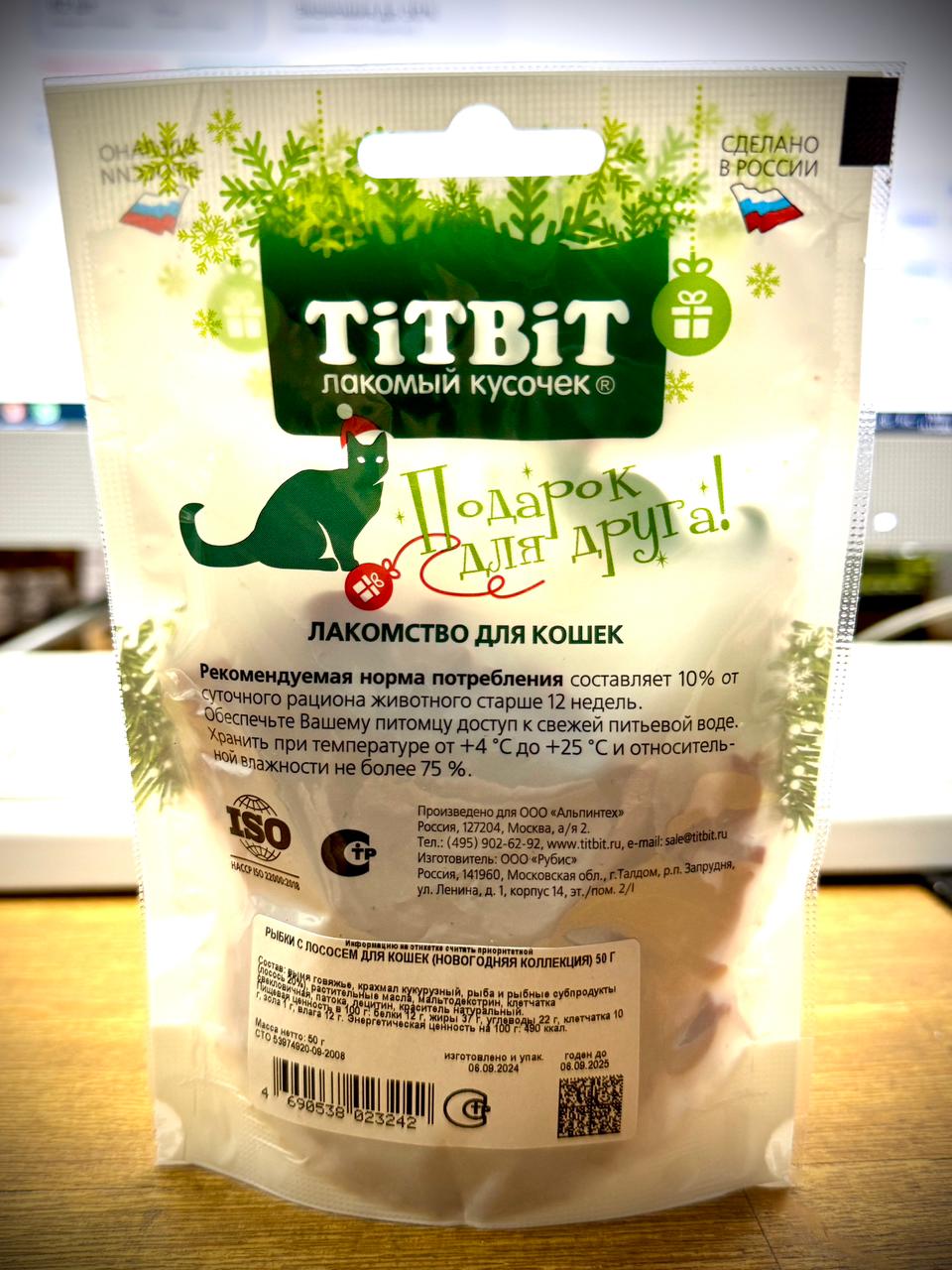 Лакомство Титбит для кошек Новогодняя коллекция Рыбки с лососем 50г