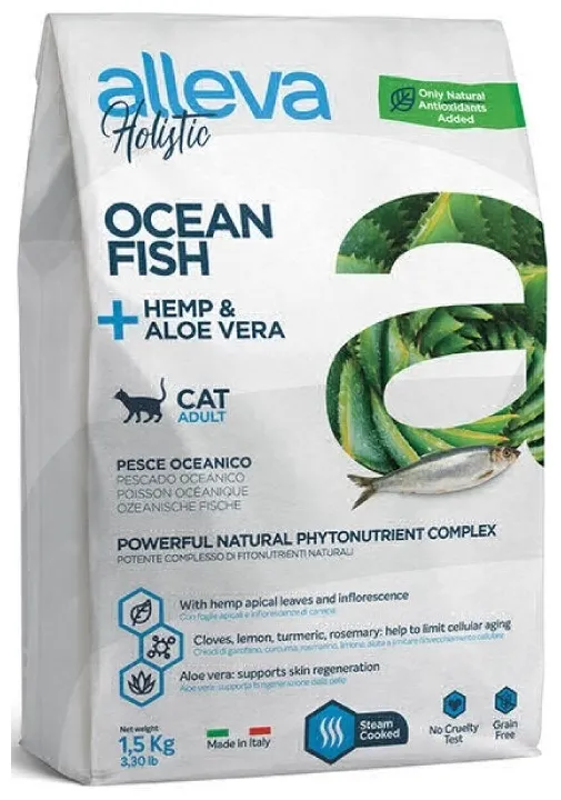 Сухой корм Аллева Холистик для взрослых кошек с океанической рыбой, коноплей и алое вера 1,5 кг
