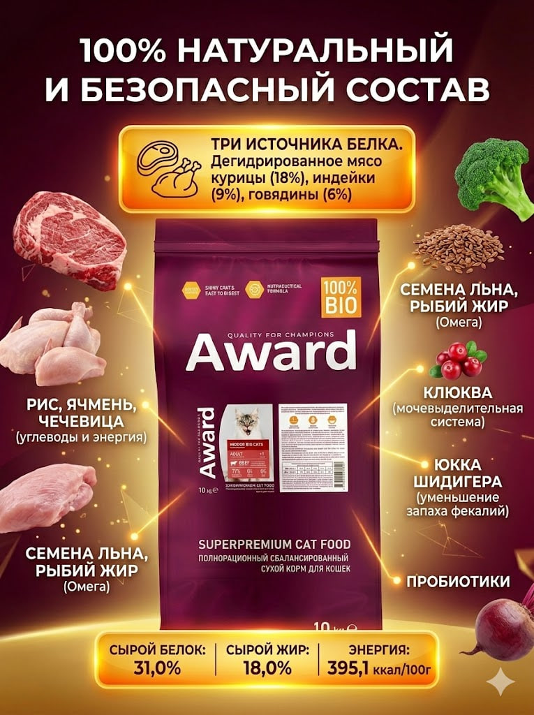 Сухой корм AWARD Indoor Big cats для кошек крупных пород с говядиной и курицей 10 кг