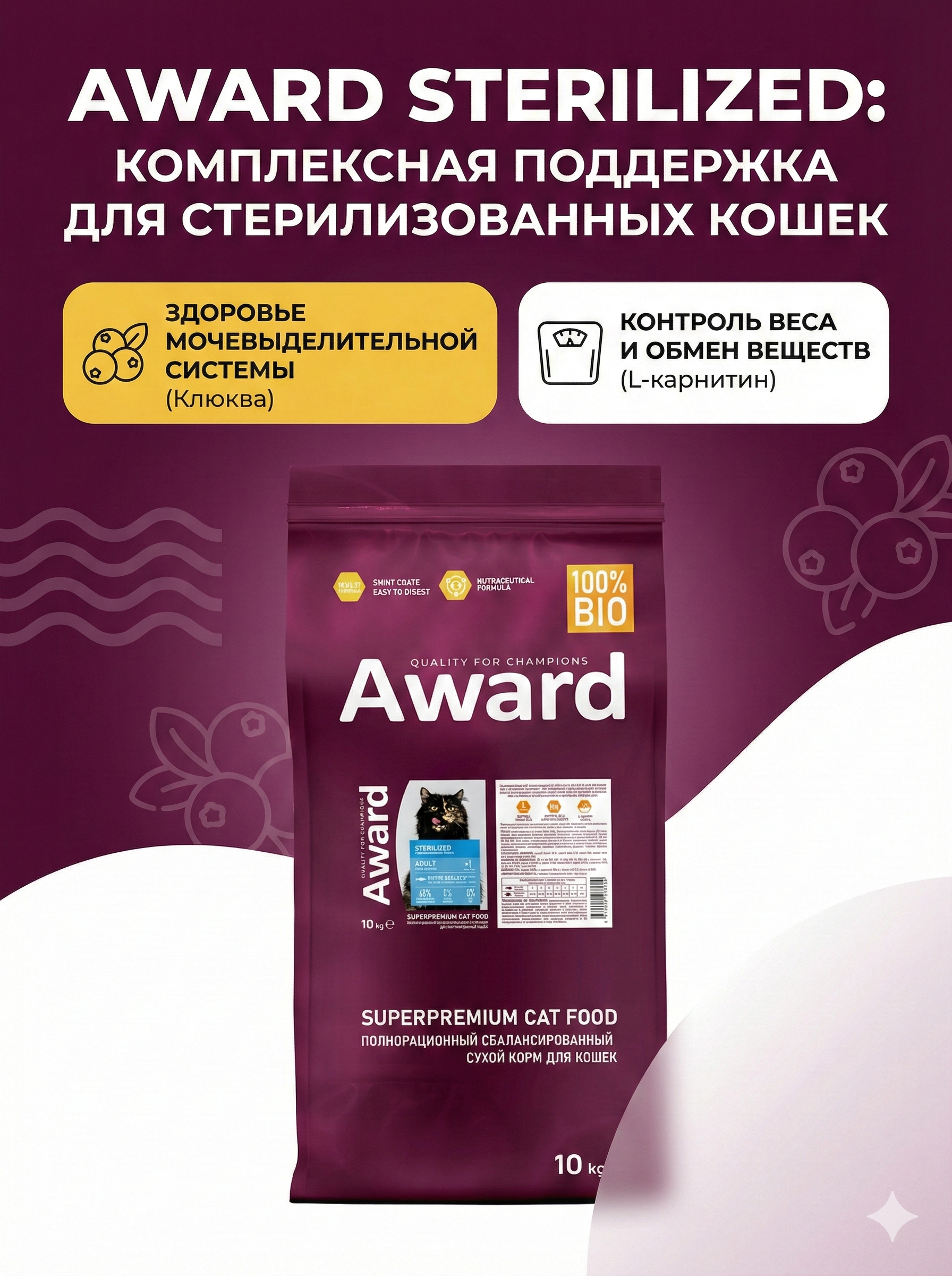 Выбирайте AWARD Sterilized для долголетия и отличного самочувствия вашей кошки!
