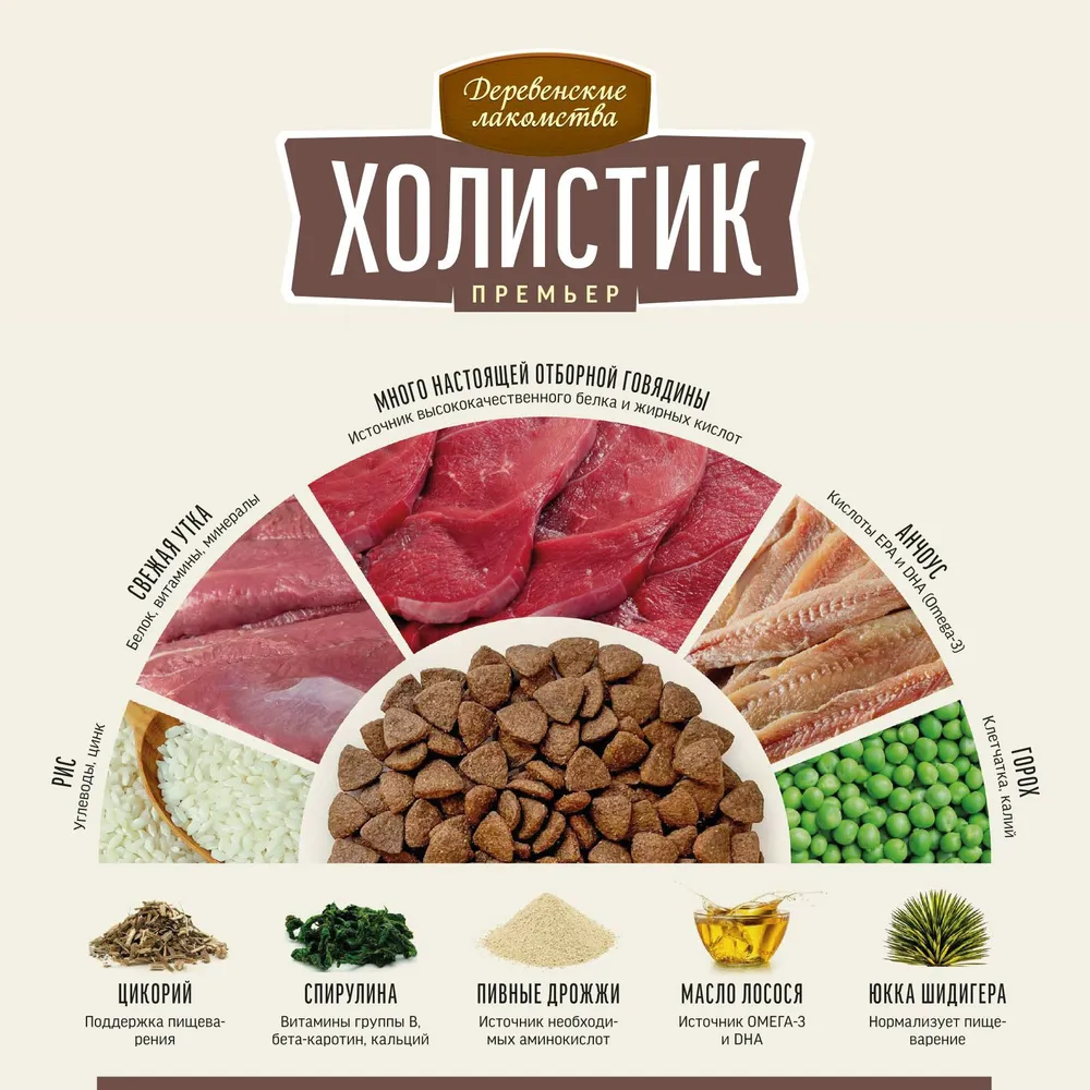 Полнорационный сухой корм «Деревенские лакомства Холистик Премьер. Для поддержки иммунитета» - рецепт здорового роста и развития!