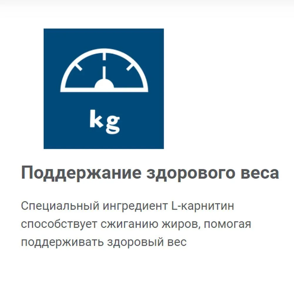 Специальный ингредиент L-карнитин способствует сжиганию жиров, помогая поддерживать здоровый вес - Гладкая шерсть и здоровая кожа