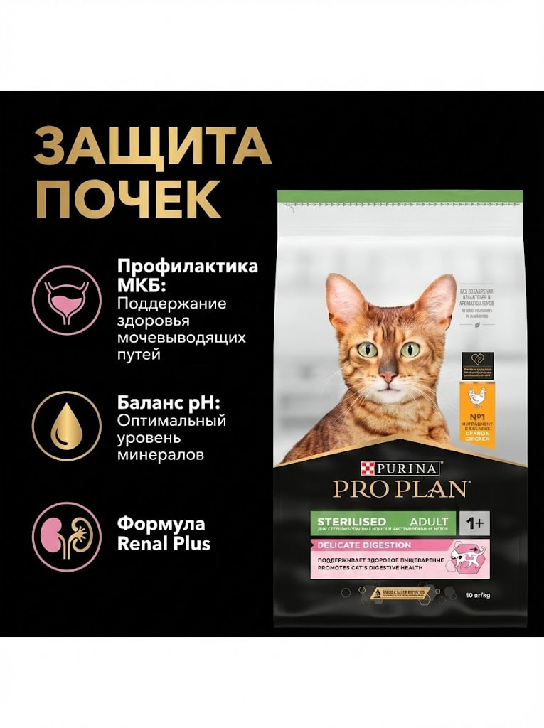 Сухой корм Purina Pro Plan Steril для стерилизованных кошек с чувст. пищеварением - Курица,10кг