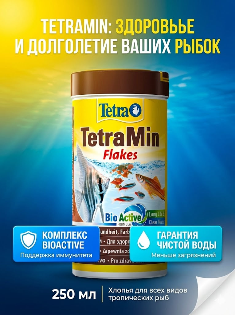Корм TetraMin для всех видов рыб в виде хлопьев 250 мл