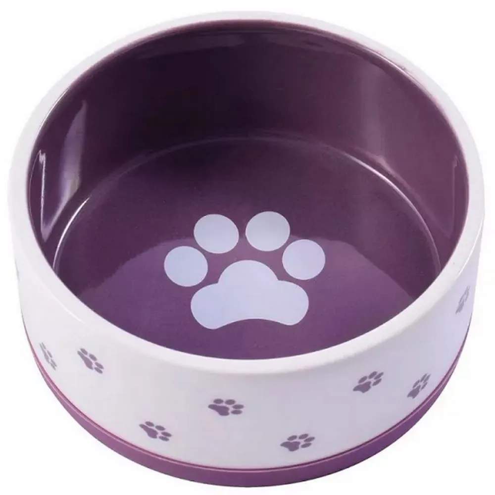 Миска Mr.Kranch для собак керамическая ,нескользящая ,белая с фиолетовым 360мл MKR211130