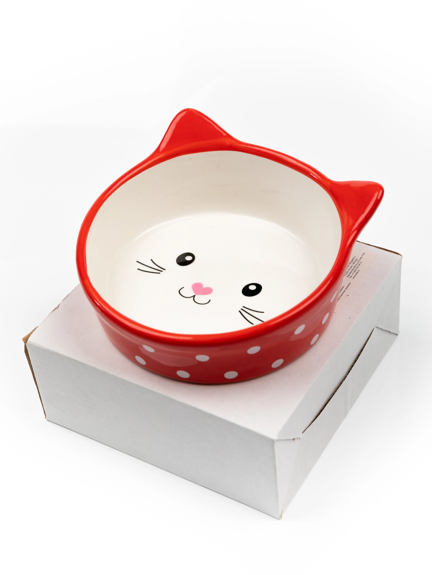 Миска Mr.Kranch керамическая  для кошек "Мордочка кошки" Красная в горошек 250 мл