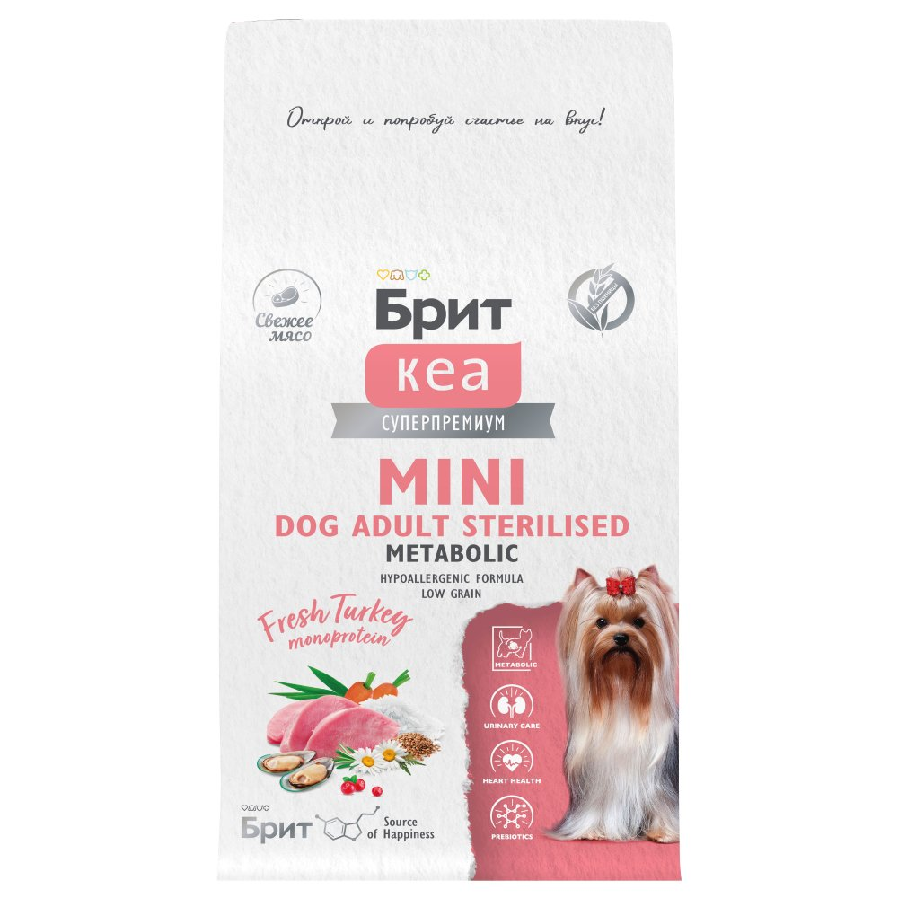 Сухой корм Брит Кеа, MINI DOG ADULT STERILISED.METABOLIC.MONOPROTEIN для собак с индейкой, 1.5кг