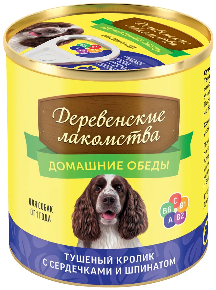 Влажный корм Деревенсие лакомства домашние обеды для собак туш. кролик с сердечками и шпинатом 240 г