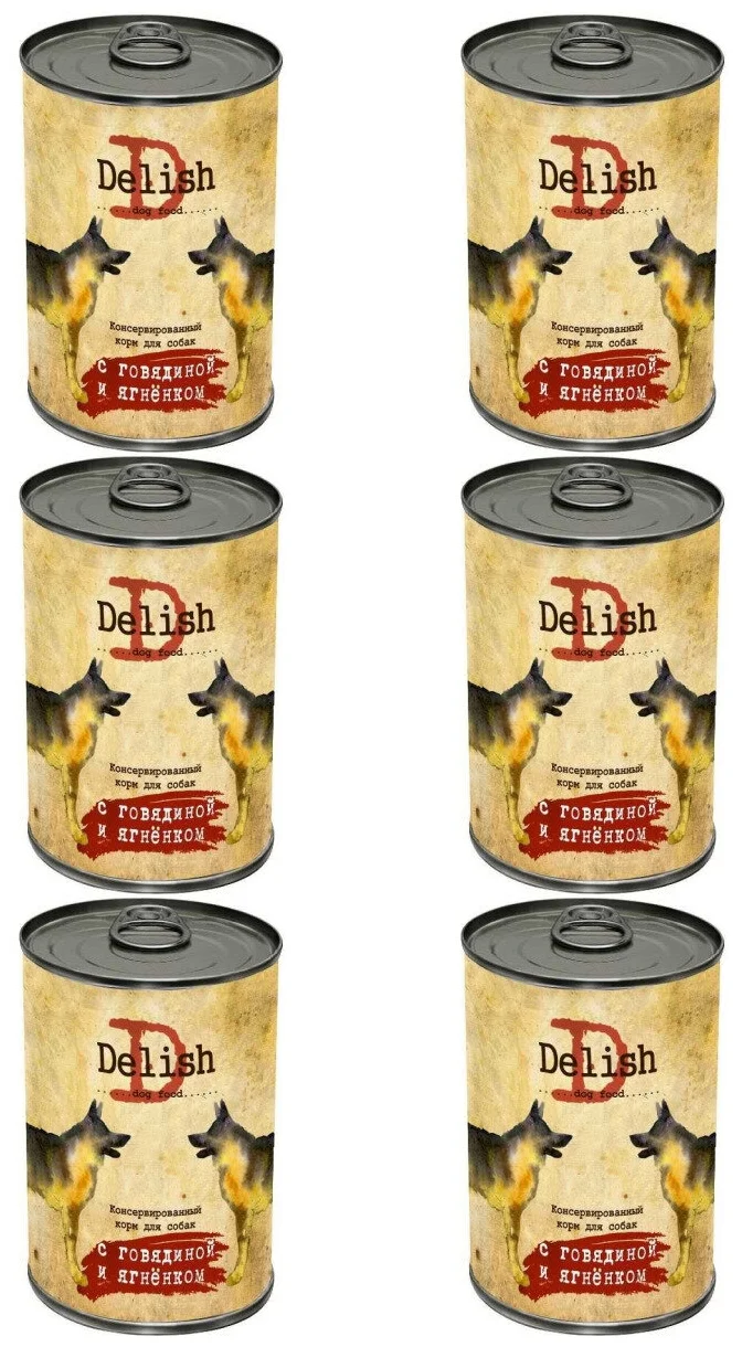Влажный корм Delish для собак говядина и ягнёнок 6*400 гр