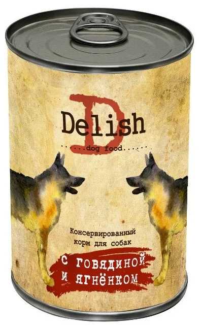 Delish - Консервированный корм для собак всех пород с мясом говядины и ягненка - вкус самой природы!