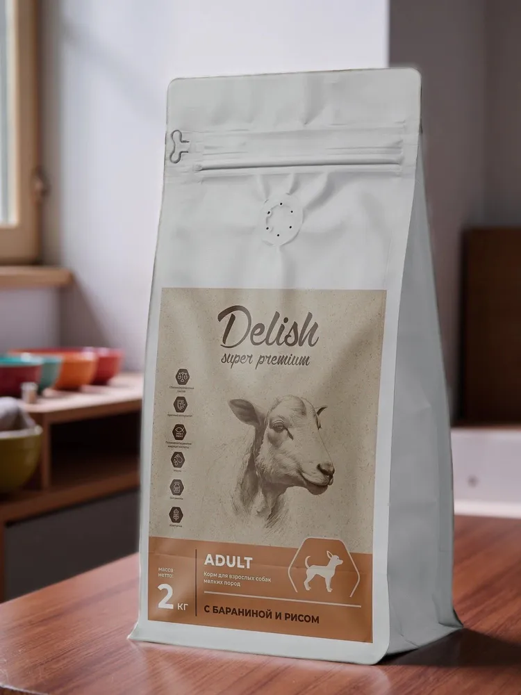 Сухой корм Delish Super Premium для собак мелких пород Баранина с рисом, 2кг