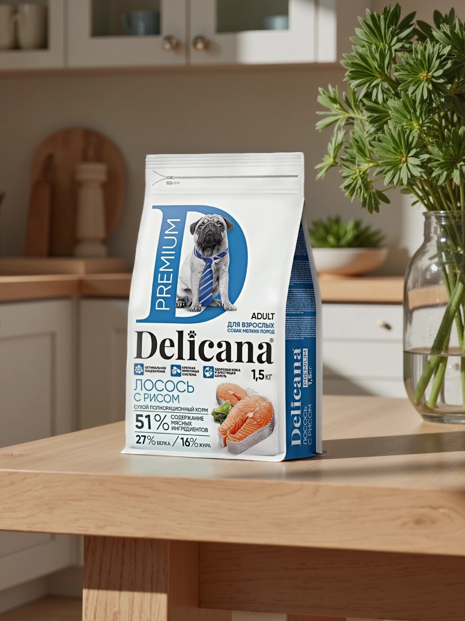 Сухой корм Delicana для собак мелких пород с лососем и рисом 1,5 кг