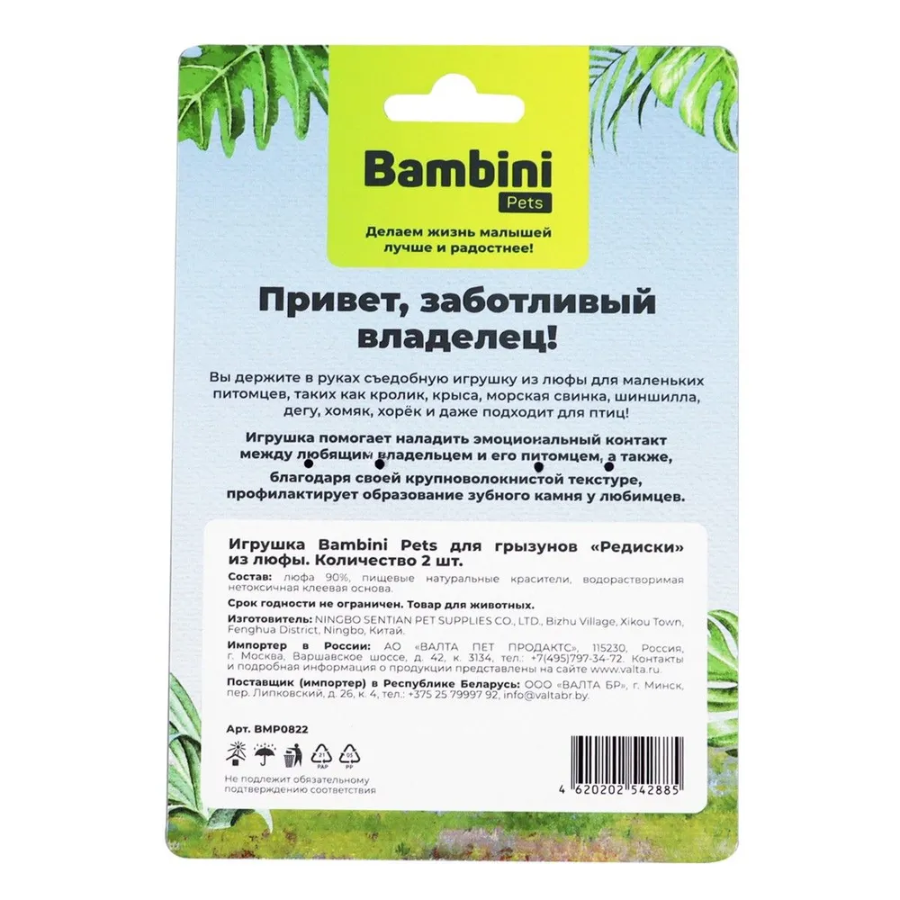 Игрушка Bambini Pets для грызунов "Редиски" из люфы, 2 шт