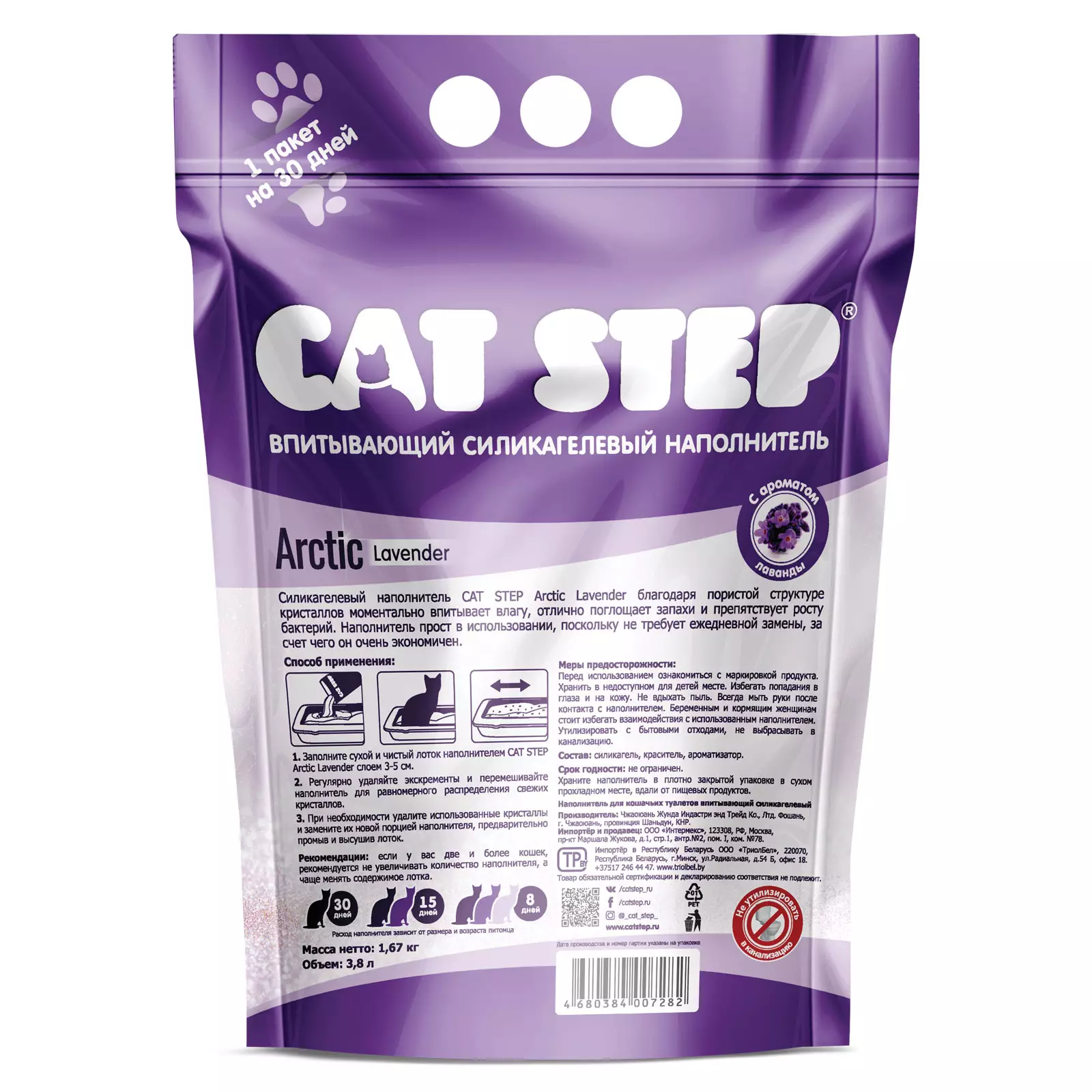 Наполнитель для кошек Cat Step Силикагель ЛАВАНДА 3,8л