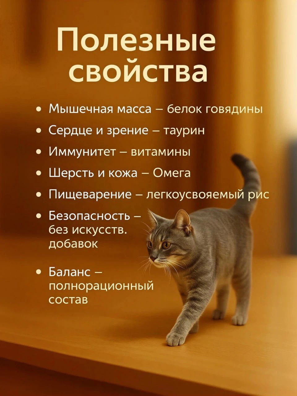 • Натуральная говядина — источник качественного белка для поддержания мышечной массы